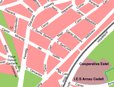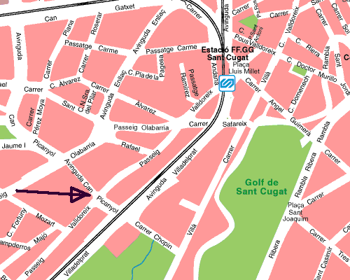 La casa de L'Estonnac está en el Passeig de Valldoreix 40. Teléfono: 936 740 543 Esquina con Avda. Can Picanyol. La entrada está señalada por la flecha. muy cerca de la salida de la autopisa MIRASOL-SAN CUGAT y muy cerca de la estación de los Ferrocarriles de la Generalitat, estación San Cugat.